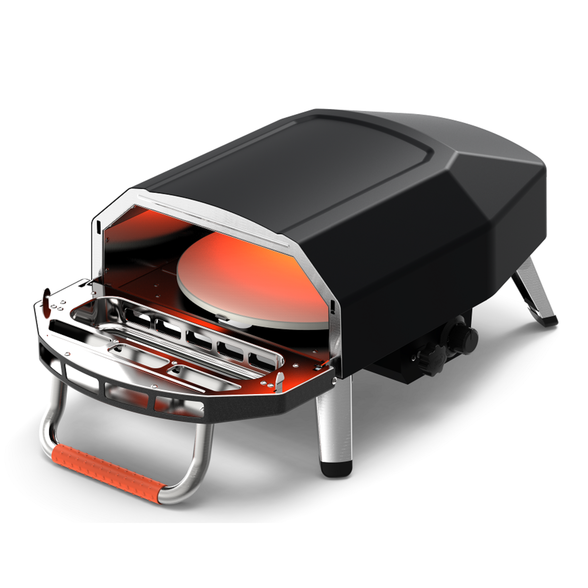 Cuenta con puerta abatible que optimiza el uso del gas llegando a su temperatura máxima en 15 MINUTOS y tambien hace que se mantenga la temperatura entre pizza y pizza.